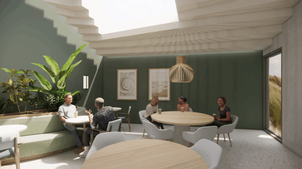 Helemaal aansluitend op de sfeer van de omgeving, het dorp, het duinlandschap, de kleuren van de zee, de visserij en het strand. Zo voelt Salem straks echt als een nieuw thuis. Met veel licht, natuurlijke materialen en frisse kleuren, ronde en organische vormen.