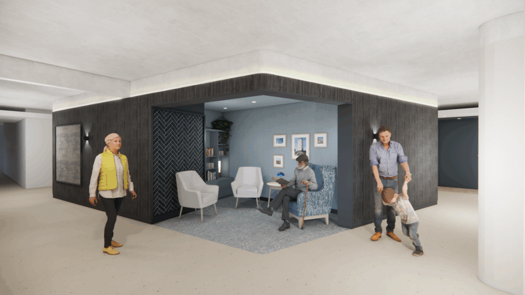 Het interieurontwerp is in goede handen bij Burobas. Dit ontwerpbureau is aan de slag gegaan met alle ideeën die zijn opgehaald voor Salem, in combinatie met het ontwerp van het gebouw door onze architect. Zo hebben ze iets prachtigs ontworpen, dat naadloos aansluit op de architectuur van het gebouw, de functies en op de natuurlijke omgeving van Nieuw Salem.