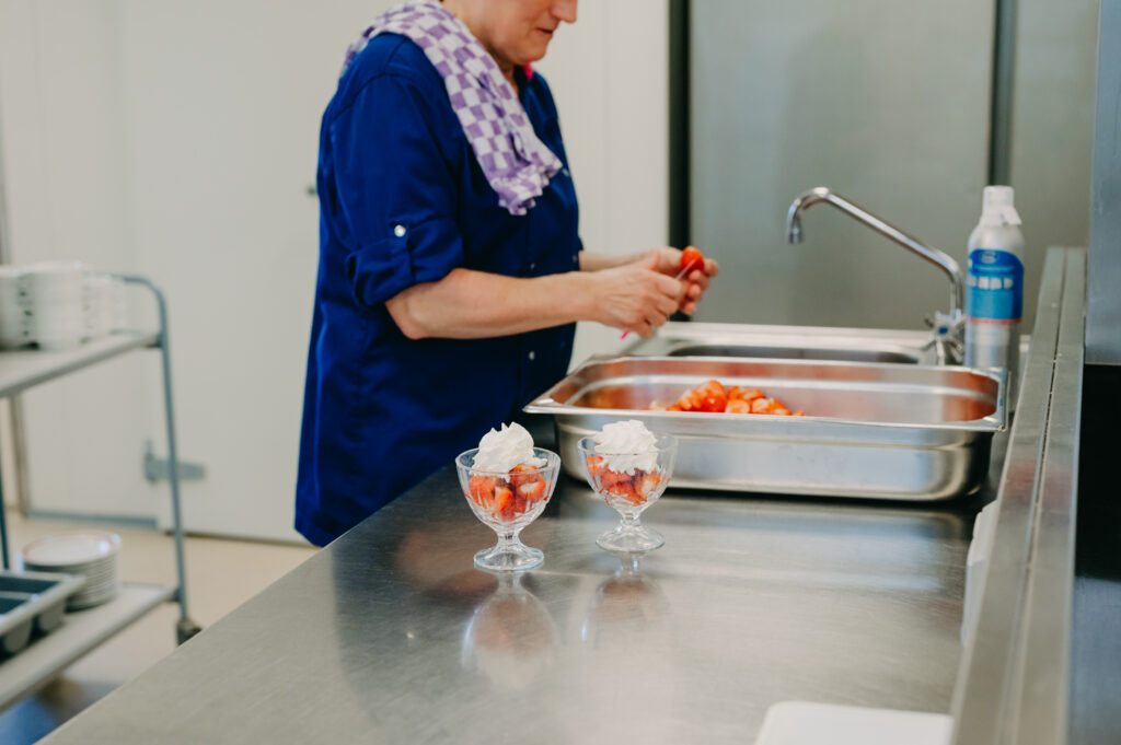 Welzijnsmedewerker Heleen Faas van locatie Duinrand regelde dit voor bewoners in Duinrand. Dat was niet alleen mooi en leerzaam om te doen, het werd ook enorm gewaardeerd. “Met verschillende collega’s van de DSV locaties hebben we een training Belevingsgericht Koken gehad. Een gezellige, maar vooral leerzame training over hoe je bewoners kunt laten genieten van de aanloop naar het eten en het eten zelf. De gezelligheid rondom de maaltijd is soms onderschat bij welzijn. Op onze eigen werkplek hebben we het geleerde vervolgens in de praktijk gebracht. De cliënten mochten zelf aangeven wat zij heel graag nog eens wilden eten. Dat maakten we klaar. En dat gaf veel positieve reacties: Van ‘Mmm, wat lekker’ tot ‘Vorstelijk, dit eten!”
